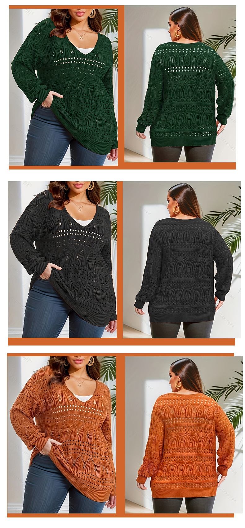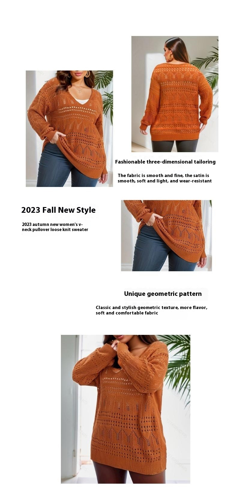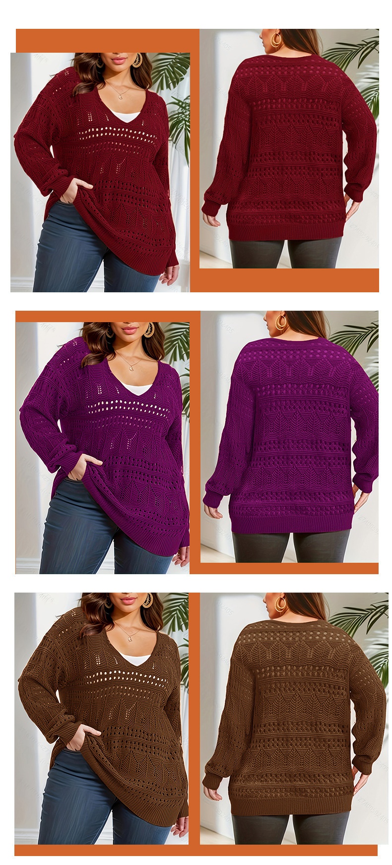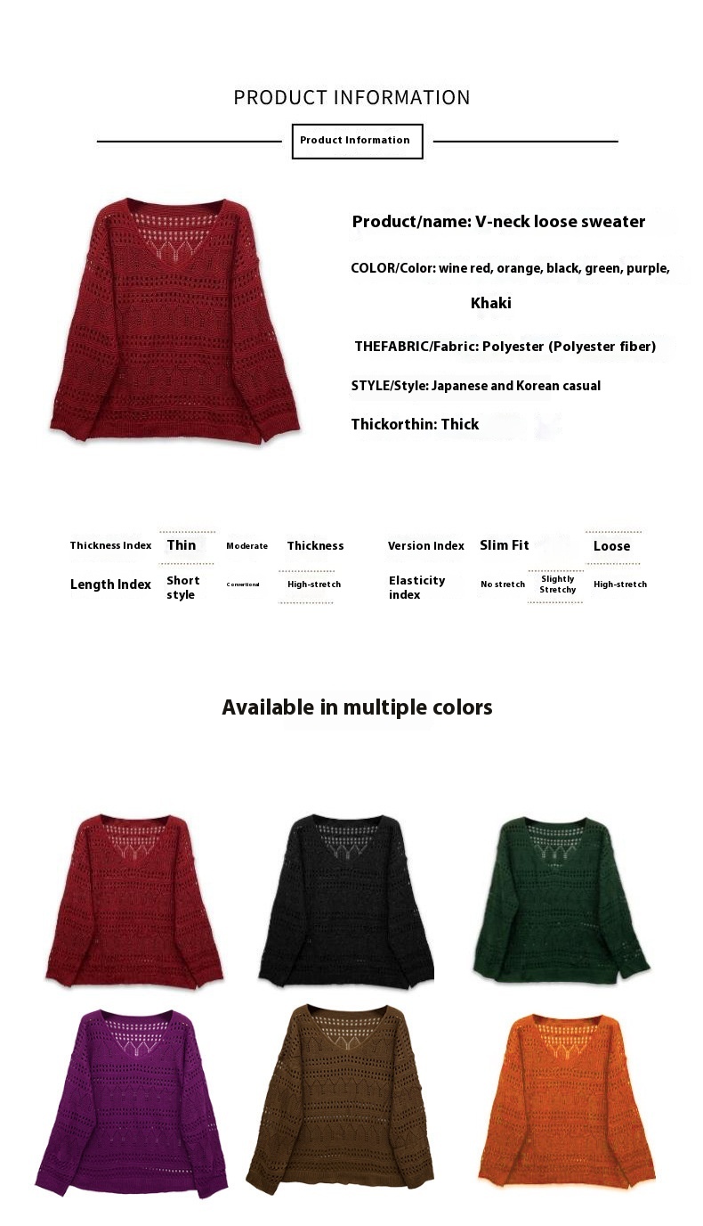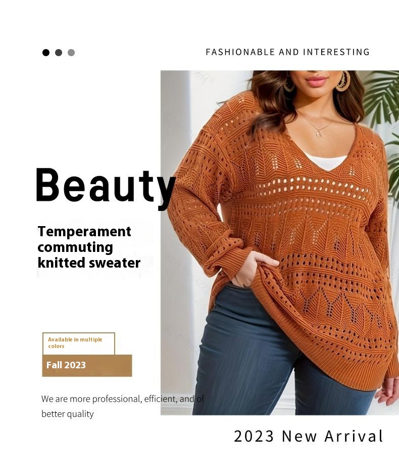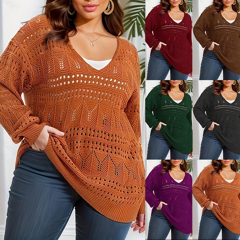 Plus Size Women's Sweater Long Sleeve V-neck Pullover Loose Sweater
